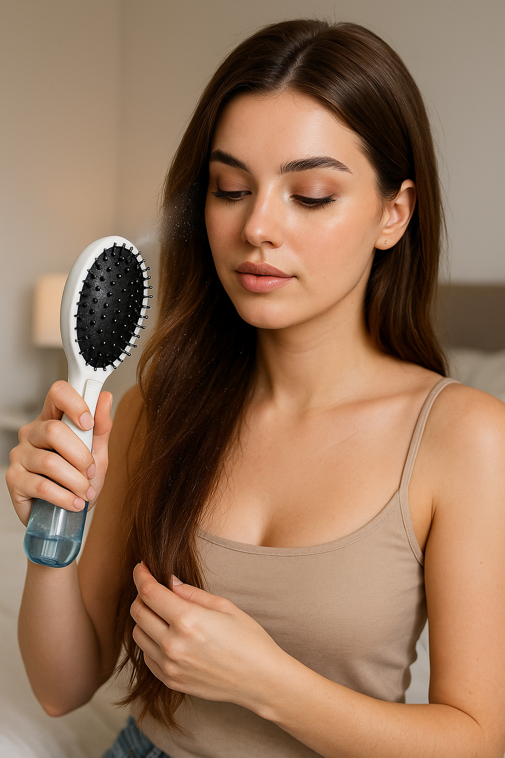 La brosse qui allie hydratation et efficacité. Humidifie et démêle sans effort, nourrit la fibre capillaire grâce à sa brume intégrée, et prépare les cheveux au coiffage en un seul geste. Un soin et un coiffage réunis dans une seule brosse.