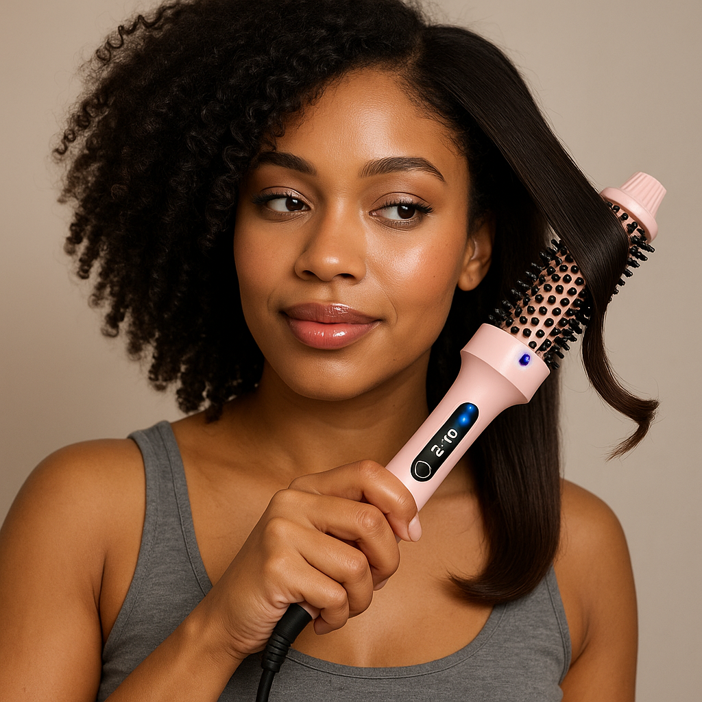 La brosse chauffante ionique nouvelle génération lisse, boucle et apporte du volume en un seul geste, tout en laissant les cheveux brillants et sans frisottis. Grâce à la technologie ionique et au revêtement céramique tourmaline, elle réduit l’électricité statique, scelle les cuticules et préserve l’hydratation naturelle du cheveu. Elle chauffe en seulement 30 secondes et son design intelligent permet un coiffage rapide, sans peigne ni pinces résultat professionnel garanti à la maison comme en voyage.